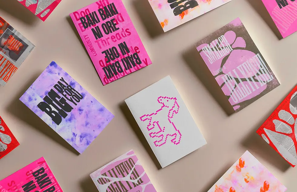 Over four months, I explored a range of materials and techniques, including metal and wooden type, LEGO, brayer rolling, and pressing flowers. I was influenced by Amos Kennedy Jr.’s signature approach to layered, vibrant typography, and by the spring blooming around me. Toward the end of the project, I ran out of paper and began printing on newspapers, embracing material limitations as part of the experimentation.
